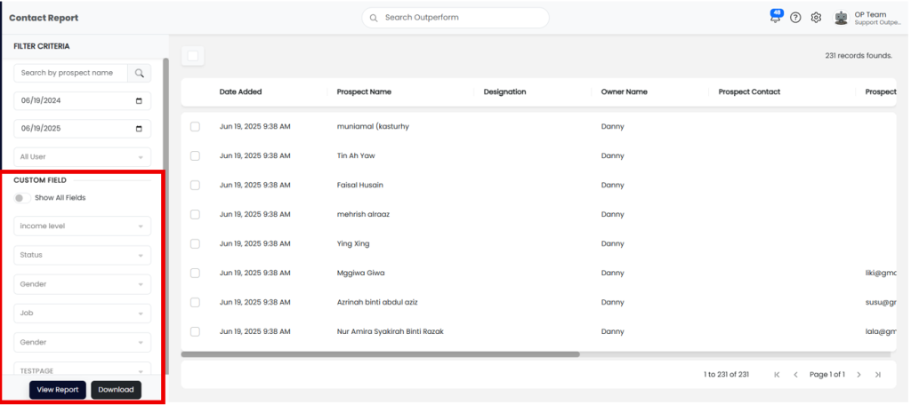 The Contact Report helps you view and analyze contact-related data, such as when contacts were created, who owns them, and their associated details. Follow these steps to access and understand the report: