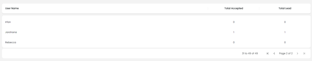 Below the graph, a table provides detailed records of accepted leads. This includes key data for tracking who accepted the lead and when: