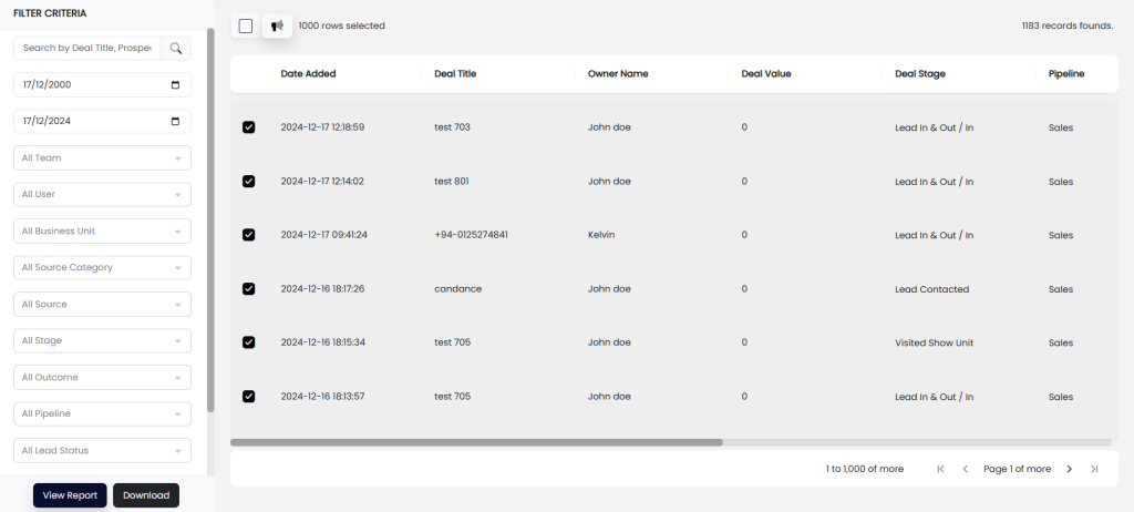 Step 3: By default the list will show 1000 rows, if you have more than 1000 rows, please click to the next page to load the next 1000 rows and then download the report.