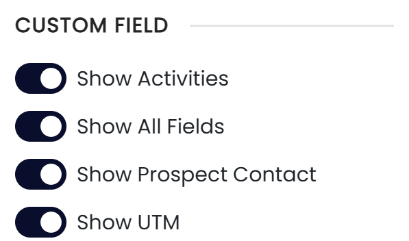 Show All Field switch will show all custom fields that is tied to the deal, prospect & organization