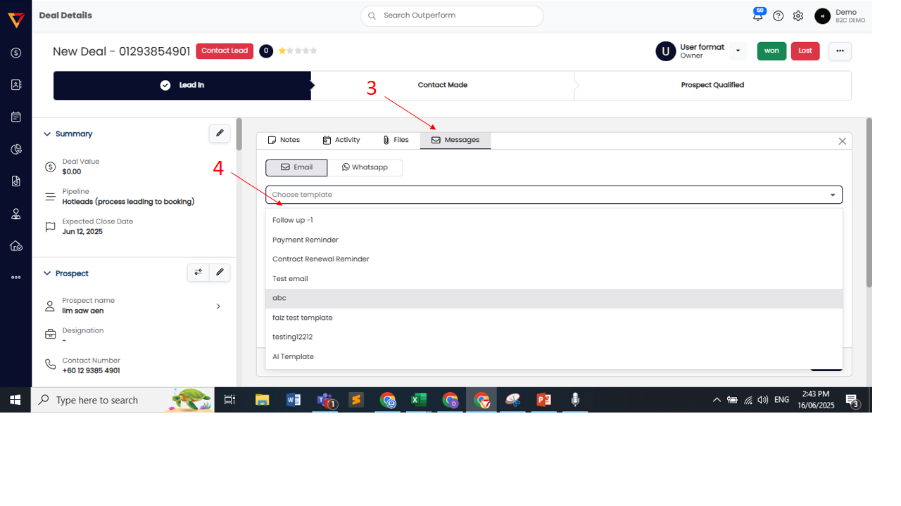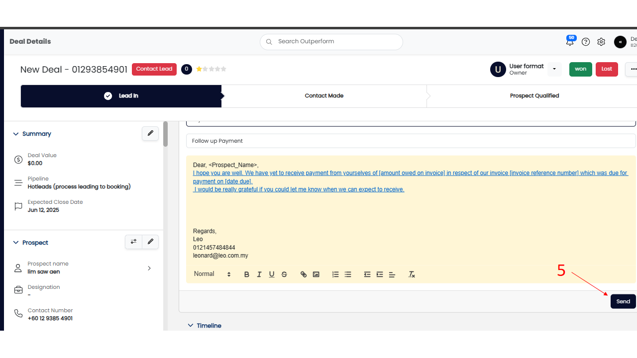 Step 5: After the template is selected, you can click submit email and it will be sent to the prospect.