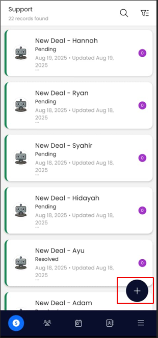 Login to OutPerform Mobile App with your login & tap on “+” button at the bottom of the Deals screen