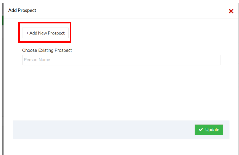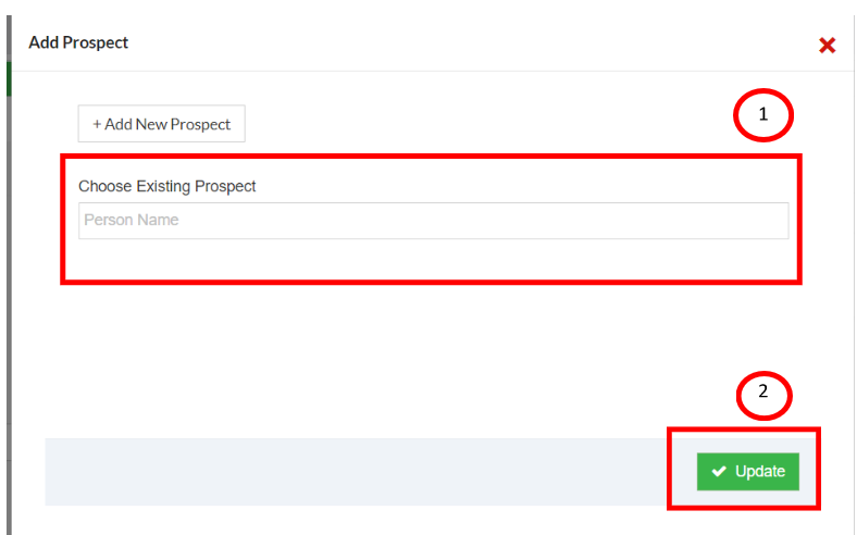 Step 6: If the prospect that needs to be added is already exists, just insert the person’s name in the “Choose Existing Prospect ” field and click on “Update” button.