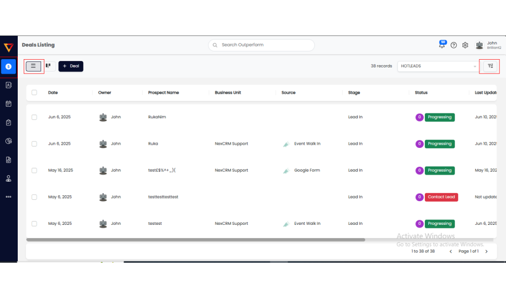 From the right-hand side menu, click the Filter button at the top of the List View. This will open the filter menu with multiple filtering options.