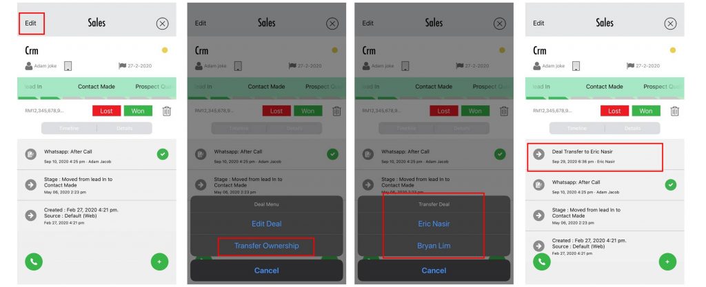Transfer Ownership of a Deal on Mobile App [Admin/Manager]