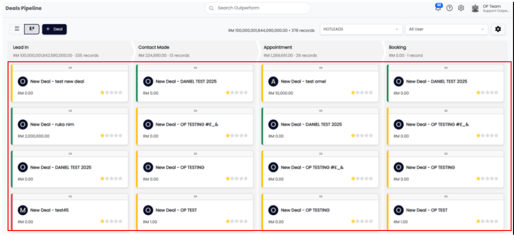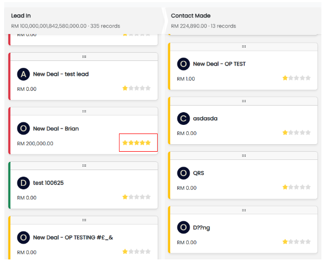 • Deals with more stars (higher priority) will automatically appear at the top of the Pipeline.