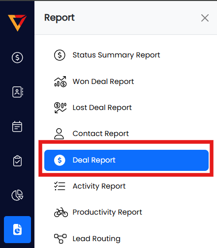 - From the Reports menu, select Deal Report.