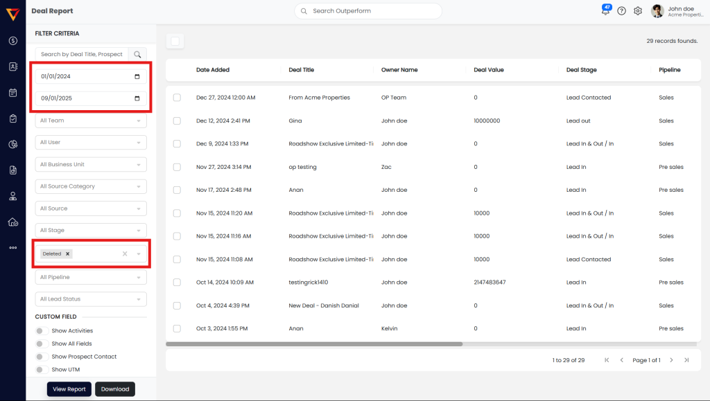 Step 2: Apply Filters to Find Deleted Deals
