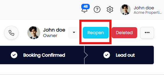 - On the Deal Details page for the selected prospect click the Reopen Deal button.