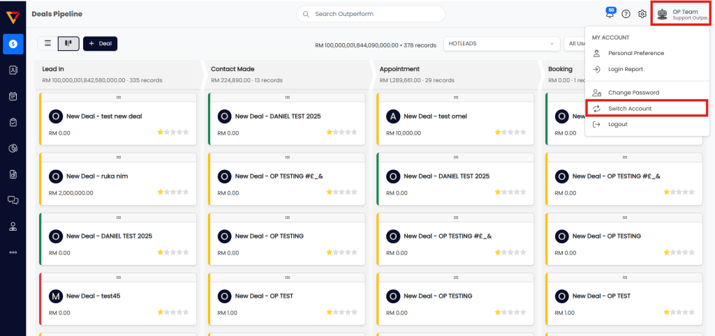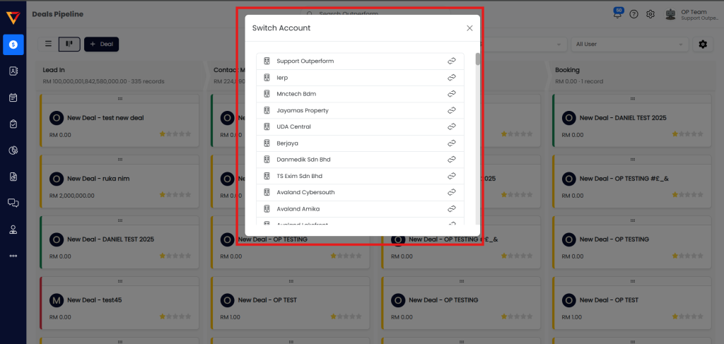 This guide shows all users how to switch between multiple accounts using a single login on the Web version of Outperform.