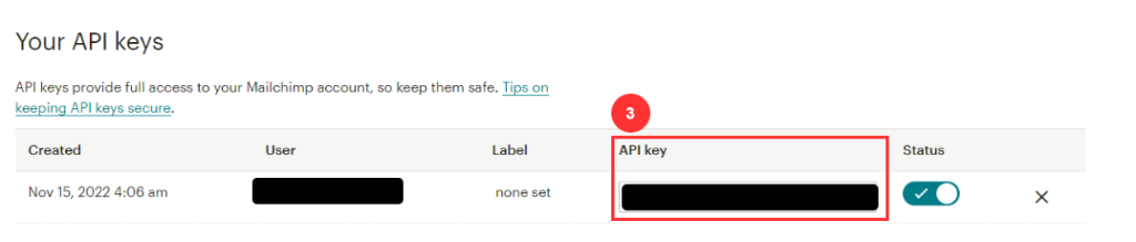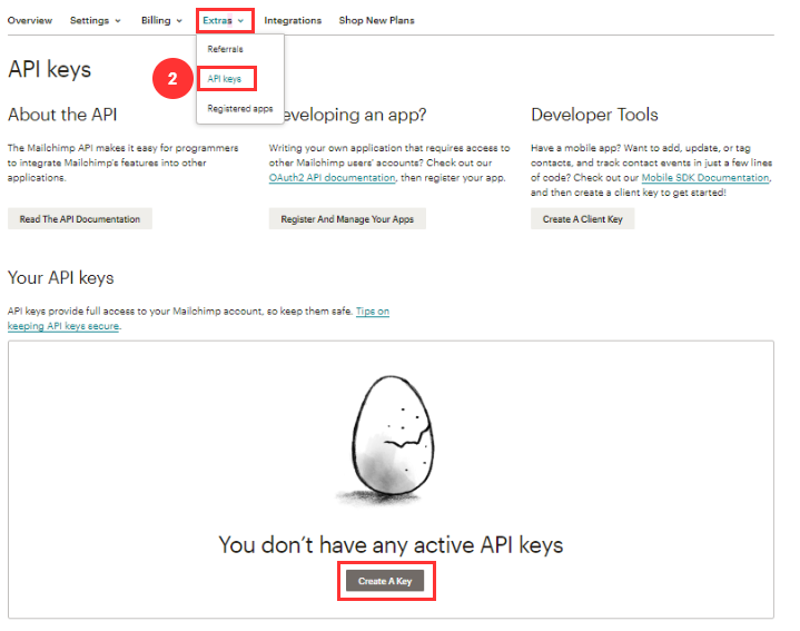 - Login into your MailChimp Account to retrieve below key & IDs to complete the integration