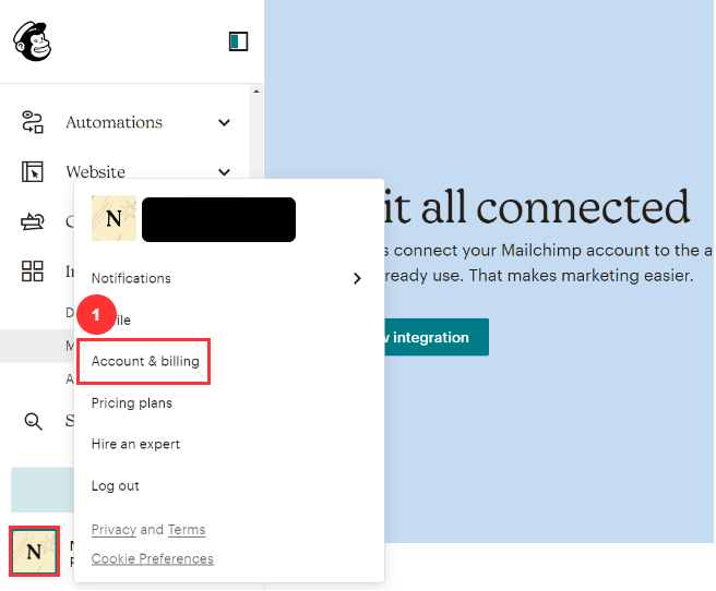 - Click on your profile image and select Account & billing.