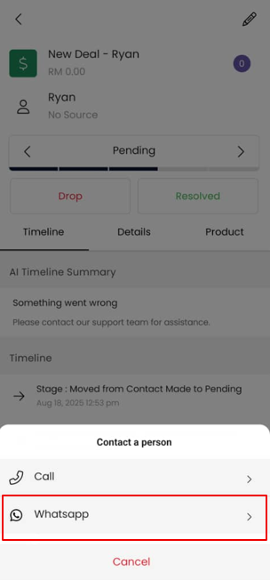 • Choose the Whatsapp to redirect to the Whatsapp template page